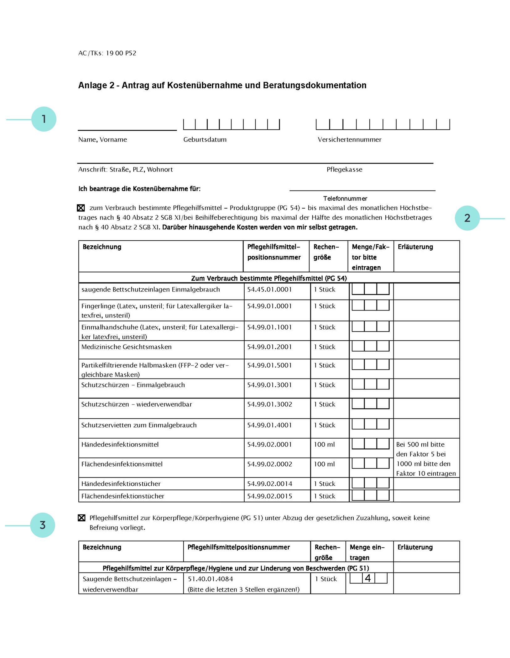 2. Pflegehilfsmittel auswählen