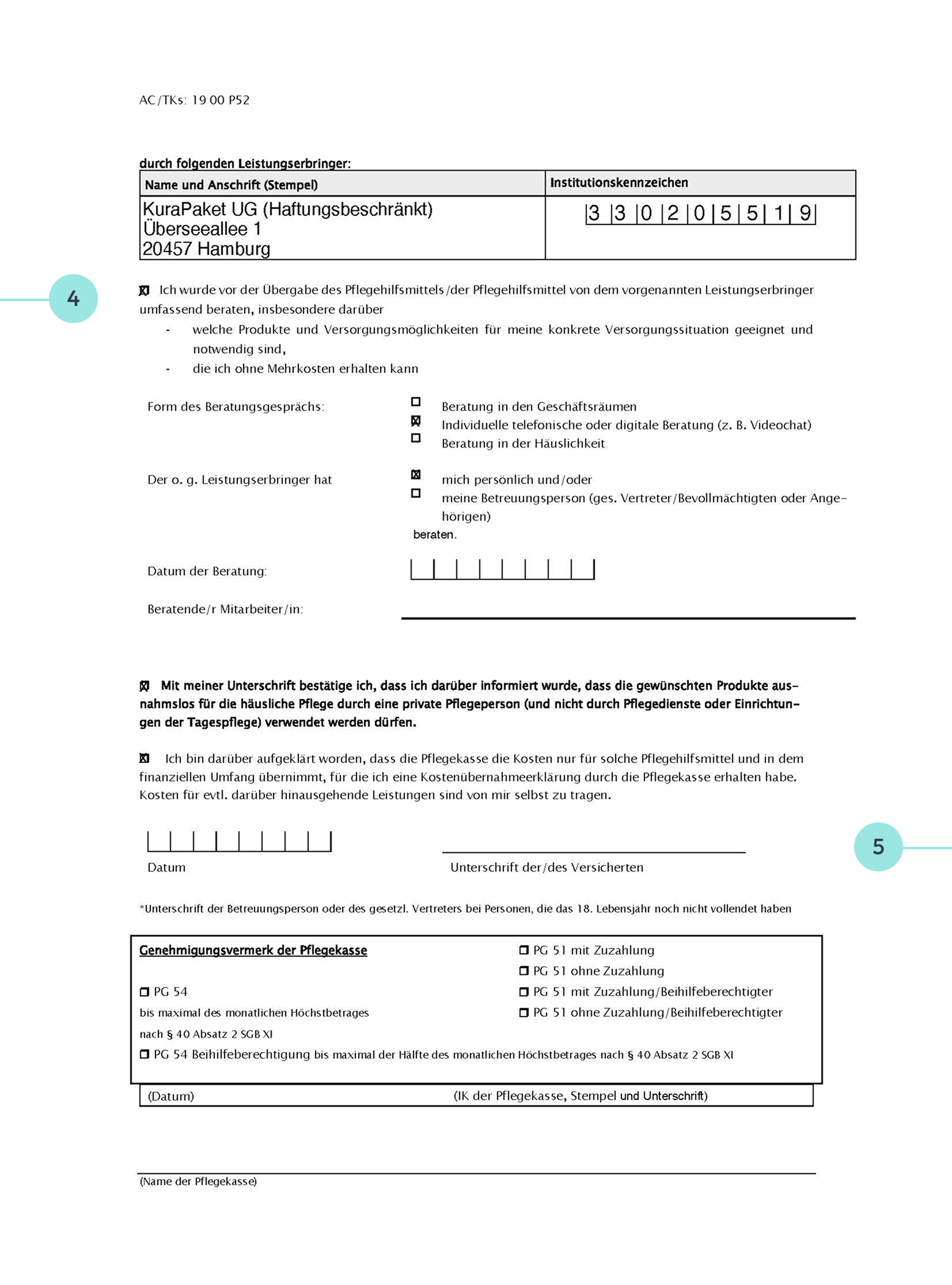 Vor Beantragung der Pflegehilfsmittel raten wir Ihnen, sich von unserem Fachpersonal beraten lassen. Tragen Sie an dieser Stelle das Datum dieser Beratung ein.